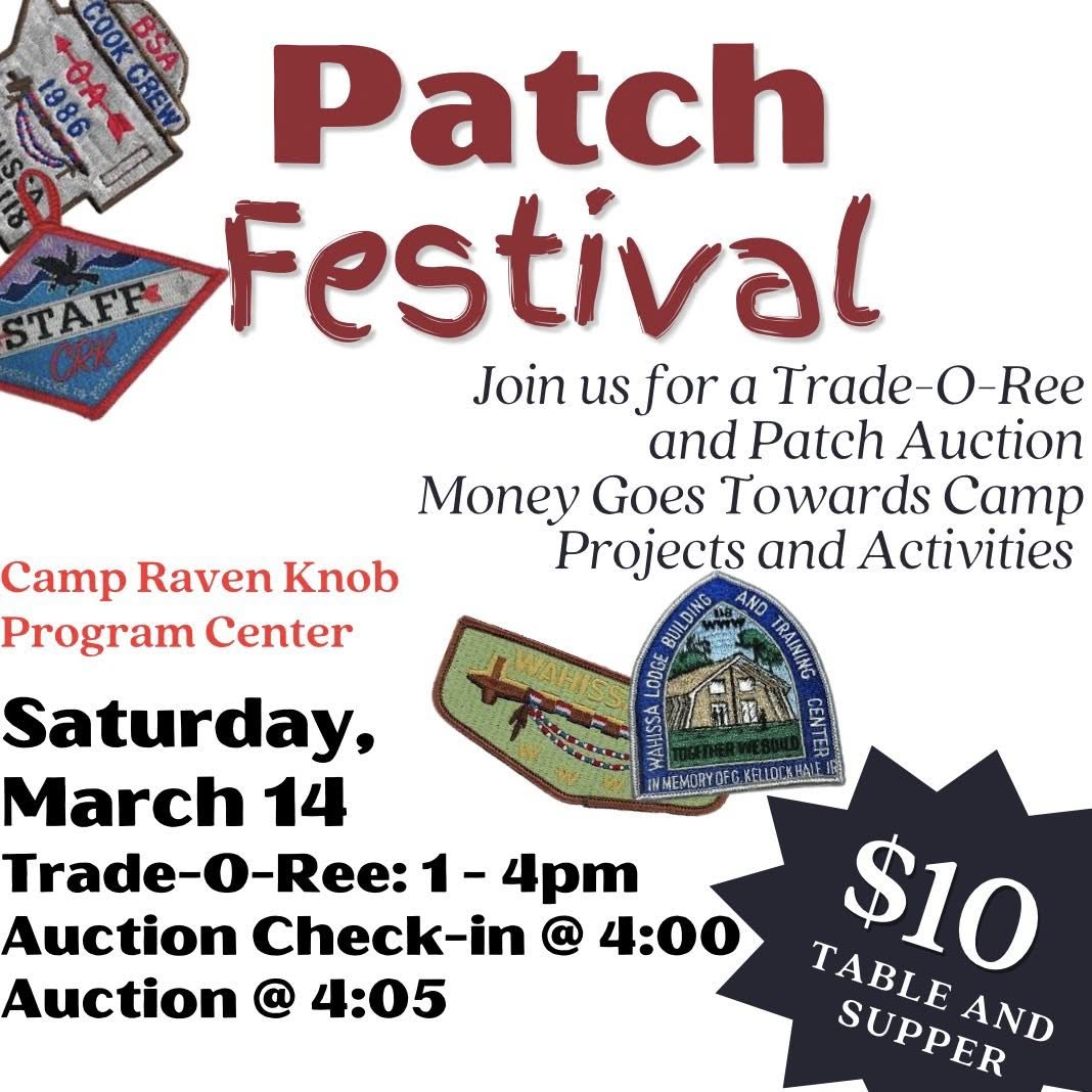 Raven Knob Scout Reservation 266 Raven Knob Road, Mount Airy, NC, United StatesDate: March 14, 2026 Address: Raven Knob Scout Reservation (Program Center) 266 Raven Knob Road Mount Airy, NC 27030 Times: Saturday: 1pm - 4pm We are inviting anyone that would like to attend Wahissa Lodge 118's Winter Fellowship where we will be hosting a Patch Festival including a Trade-O-Ree and Patch Auction on Saturday, March…